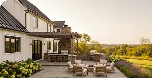 Outdoor kitchens, fire features, and living areas designed for connection, comfort, and everyday use — built to match your home and lifestyle.