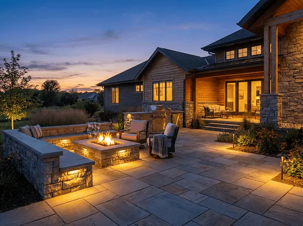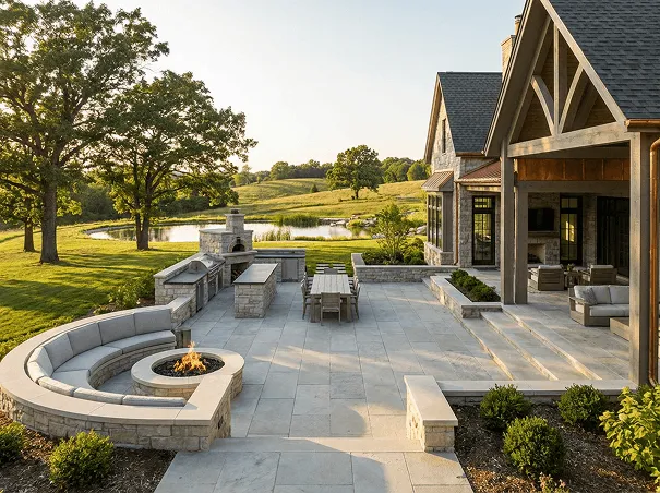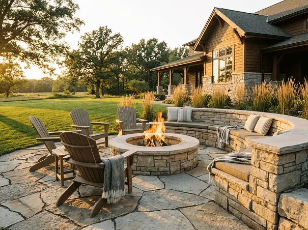 Built-in fire pits and gathering areas that extend how long you can enjoy your outdoor space throughout the year.