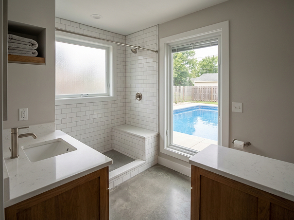Convenient poolside bathrooms designed to reduce trips inside, giving your family a more relaxed pool experience.